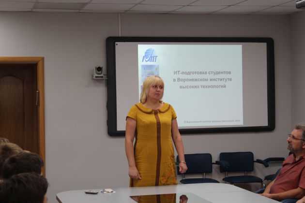 14 июля в период основной волны приема документов на очную форму обучения в Воронежском институте высоких технологий состоялась встреча абитуриентов и их родителей с руководителем IT–направлений, кандидатом технических наук, доцентом Ю. П. Преображенским и проректором по развитию, заместителем председателя приемной комиссии К. Н. Бросовой.