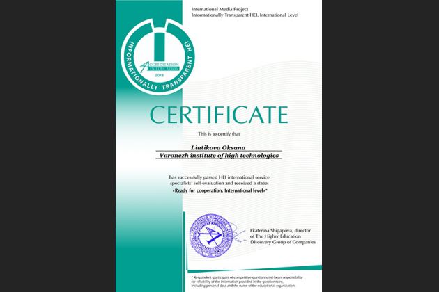 Эта победа является первым шагом к получению Воронежским институтом высоких технологий статуса «Информационно открытый университет. Уровень международный».