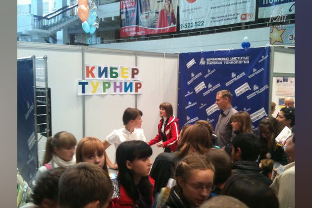 13-14 сентября 2011 года во Дворце творчества детей и молодежи прошла ежегодная выставка «Образование-шаг в будущее». Ее посетили более 4000 школьников и студентов Воронежа и Воронежской области. Воронежский институт высоких технологий представил новые возможности знакомства с вузом. Теперь каждый желающий может посмотреть фото и видеоматериалы о студенческой жизни, расписание занятий, кружков, секций института и многое другое, воспользовавшись информационным терминалом. Любителям спорта была представлена уникальная возможность продемонстрировать свои таланты в различных видах спорта. Так, был проведен кибер-турнир на кубок ВИВТ, где каждый, решивший побороться за звание победителя, получил поощрительный приз. Лучшими по итогам соревнований стали: Саприна Екатерина с результатом 54 балла, занявший первое место; Третьякова Марина с результатом 53 балла, занявший второе место; Небольсин Антон и Зайцев Илья с результатом 42 балла, поделили между собой третье место. Воронежский институт высоких технологий и в дальнейшем планирует проводить соревнования подобного формата. Благодарим всех за участие и желаем новых побед!